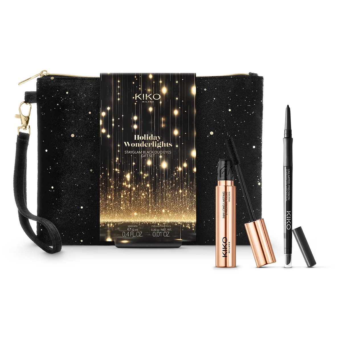 Conjunto de presente de olhos composto por uma máscara com efeito volume panorâmico e um lápis preto para os olhos, em uma pochete sofisticada.O conjunto contém:- No. 1 Unlimited Precision Automatic Eyeliner & Khol 16 BlackLápis de olho automático para o exterior e interior da linha d'água. Ideal para definir o formato dos olhos e realçar o olhar ao máximo com um traço preto preciso e uniforme de longa duração por até 24h*.-No. 1 Máscara de volume panorâmico e de longa duração 24hMáscara com efeito de volume panorâmico e definição de longa duração, até 24 horas*. Textura fluida e flexível com acabamento ultrapreto para adicionar profundidade ao olhar e realçar os cílios de manhã à noite.-Nº 1 Pochete para maquiagem e acessóriosPrática e elegante, é feita em tecido com efeito de veludo preto e decorada com uma cascata de detalhes dourados brilhantes. Formato retangular, fechamento em zíper e alça para o pulso.Ideal para:deixar o olhar intenso e definido e surpreender com um presente encantador.